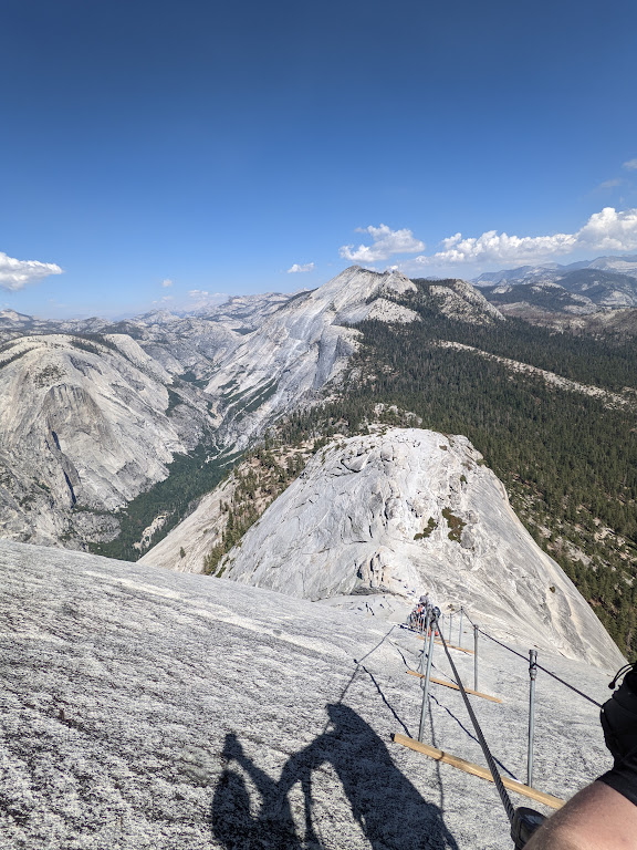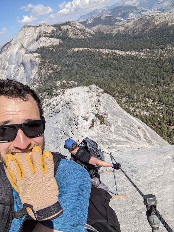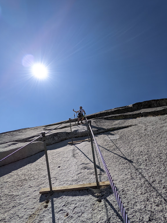 At long last, we make it to the cables after about 5 hours on the trail! I had read that the cables are much steeper than they seem in pictures, and, once again, what I had read was correct. The cables are extremely steep and the granite is slick, even when dry. My friends and I were actually some of the only people to wear harnesses while doing the cables section, and we were glad to have worn them. While it’s true that the cables can be climbed safely without a harness, and that the majority of people don’t wear one, having one definitely helped make it a more enjoyable experience and dare I say more carefree. With the harness as a backup, I felt much more relaxed on the cables, and felt like I could truly absorb, take in, and enjoy the moment. I didn’t feel like I had to hang onto the cables for literally dear life and be super attentive to each and every move. I was definitely not being reckless, but the security of the harness definitely allowed me to be freer on the cables, ironically. After about 20 minutes on the cables, we made it to the summit!