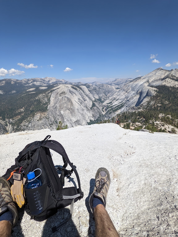 After about 90 minutes spent enjoying and exploring the summit, my friends and I have a snack and prepare for our journey back down to the Valley. It took us about 4 hours to make it back down, which was longer than I thought it would, to be honest. At the top of Nevada Fall, we decided to take the Mist Trail down, and hop back on the John Muir at Clark Point again to finish it off. We ended up finishing at about 8p, using our headlamps to guide us the last 2 miles or so as it had become dark at that point. It felt so good to make it back to the campsite and take off my boots. While the hike was without a doubt the hardest hike I had ever done, and also probably the most physically demanding thing too, it was also one of the greatest experiences of my life.
